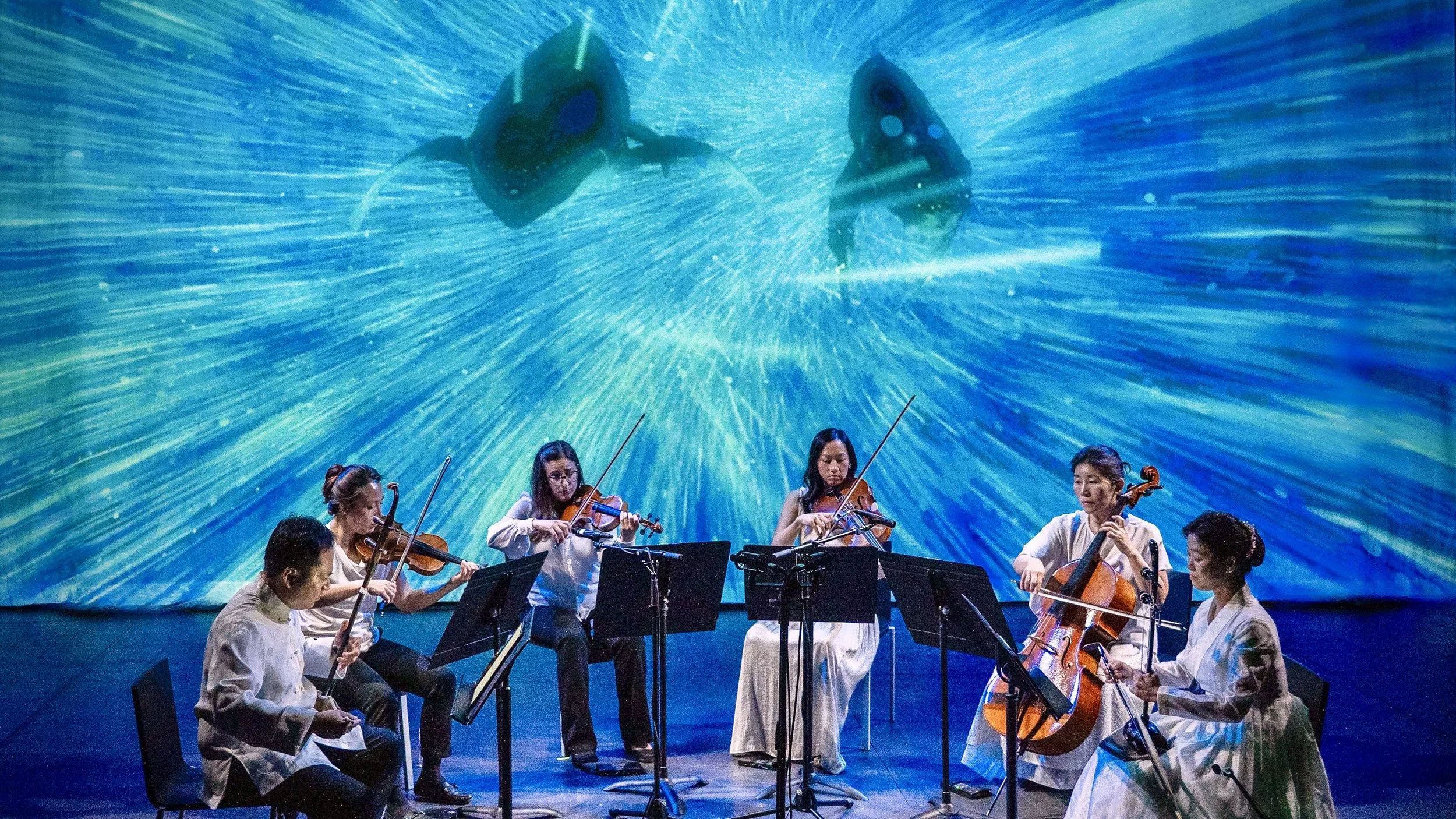 Threaded Resonance presents Calling of the Whales, an immersive chamber work by Hee Yun Kim for erhu, haegeum, and string quartet. Blending cross-cultural strings with multimedia and visual storytelling, the piece traces the journey of a pod of whales across the Pacific.